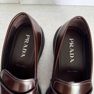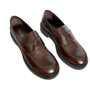 PRADA 2DG149 MENS BROWN LEATHER PENNY LOAFER SHOES, SZ P 9.5, 11
