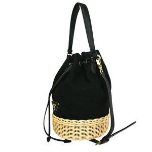 PRADA 2Way Plage Wicker 2Way Shoulder Hand Bag Straw Canvas Leather
