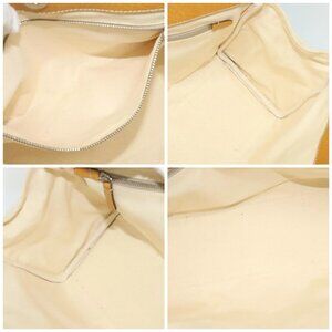 PRADA 2way Hand Bag Canvas Leather Beige Silver Auth