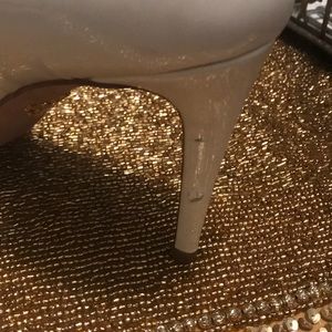 White Parada pumps, lightly worn, tiny scuffs on the heel, a little black mark on the left top