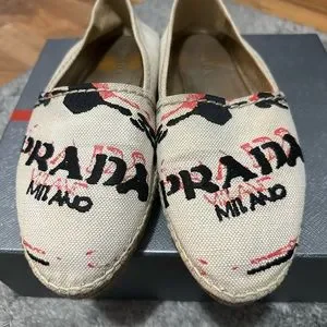 Classic canvas espadrille with embroidered logo. Cotton upper. Round toe. Slip-on style. Metallic leather lining. Rubber sole. Made in Spain.