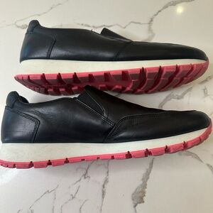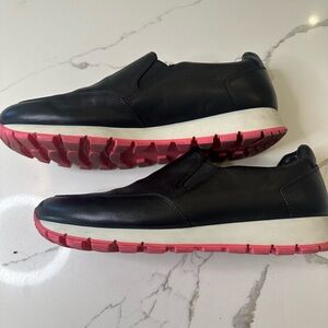 Prada Leather Slip-On Gusseted instep and two-tone cushion sole. Leather upper. Style 5947. Please examine photos for wear