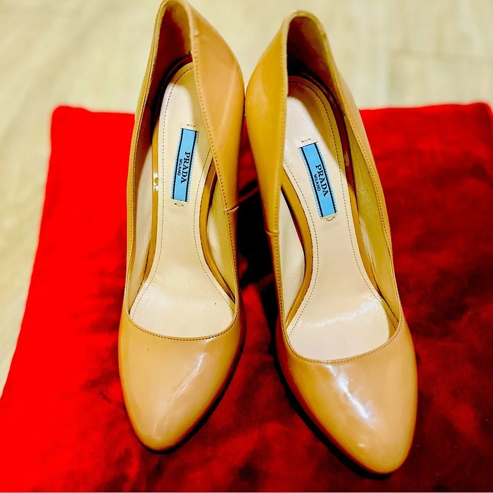 PRADA Nude Patent Leather with Silver Metal Heel Round Toe Pumps C6. Great condition.