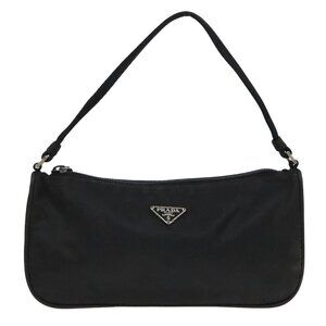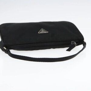 PRADA Accessory Pouch Nylon Black Silver Auth