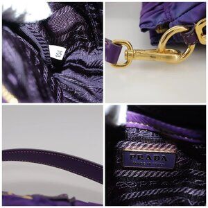 PRADA Accessory Pouch Nylon Purple Gold Auth
