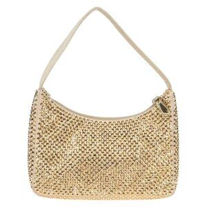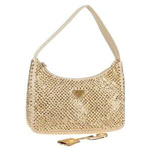PRADA Accessory Pouch Satin Gold Auth 122886SM