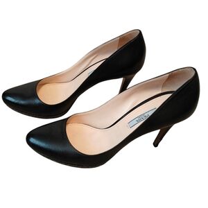 Elegant and timeless, these Prada black leather pumps are perfect for any occasion. Crafted with precision, they offer both style and comfort.