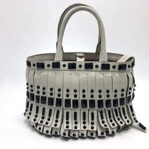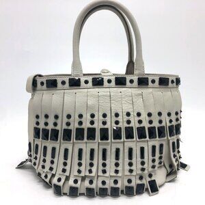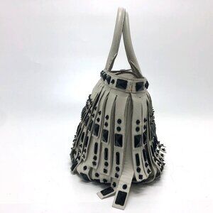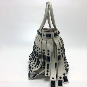 PRADA B2466S fringe Bag Hand Bag Leather White/GoldHardware