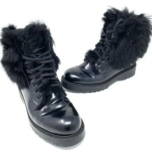 PRADA BLACK LEATHER AND FUR PLATFORM MOTO COMBAT BOOT SZ 7 or EU 37 In excellent preloved condition. Minor signs of wear throughout. Moderate creasing. This boot runs about one half size smaller than listed on boot. I am listing it as the size it actually is. Current MSRP on similar styles is 1490.00 Authenticity guaranteed or your money back. No bag or box.