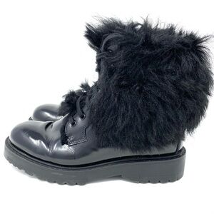 PRADA BLACK LEATHER AND FUR PLATFORM MOTO COMBAT BOOT SZ 7 or EU 37