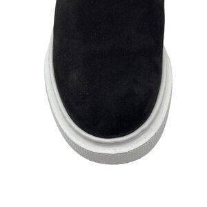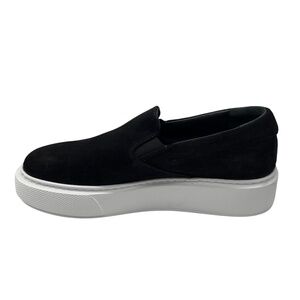 PRADA BLACK / WHITE SOLE SUEDE LOW TOP SLIP ON SNEAKERS