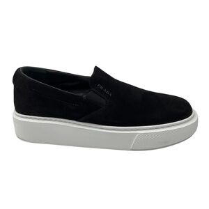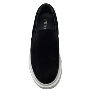Prada Black / White Sole Suede Low Top Slip On Sneakers