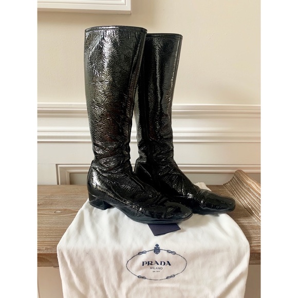 Prada “Naplak” Crinkled Patent Leather Boots
