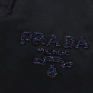 PRADA Beads Fringe Hand Bag Nylon Navy Gold