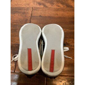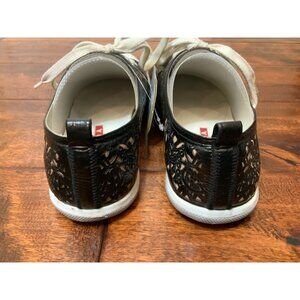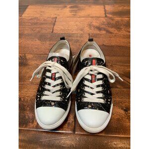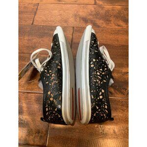 PRADA Black Floral Laser Cut Patent Leather Sneakers, Size 7 | 37