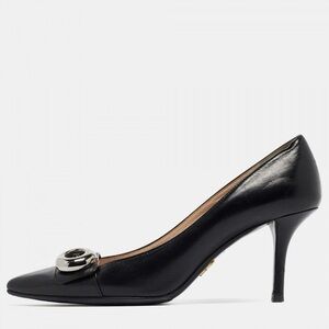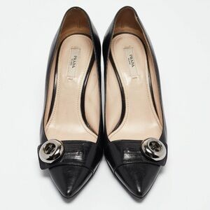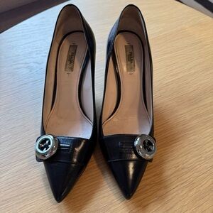 PRADA Black Leather Pointed Toe Button Accent Pumps Heels Shoes Size 38