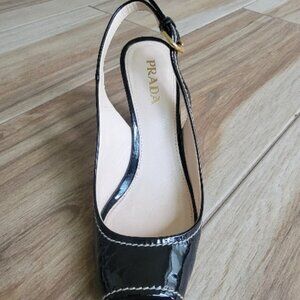 PRADA Black Patent Leather Peep Toe Espadrille Wedge Pumps Eur. 37