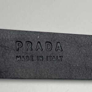 PRADA Vintage Saffiano Leather Belt with Silvertone Buckle - Black - Preowned