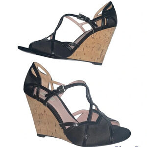 PRADA Black Satin Concho Wedges Sandals Size 5.5