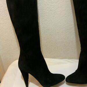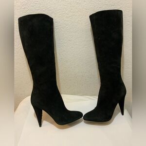PRADA Black Suede Knee Stiletto Boots Size 39