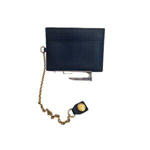 PRADA Blue Saffiano Leather ID Credit Card Wallet