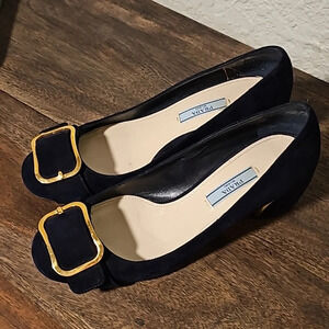 PRADA Blue chunky shoes, sz 38 Calzature Donna, suede w/ gold buckle
