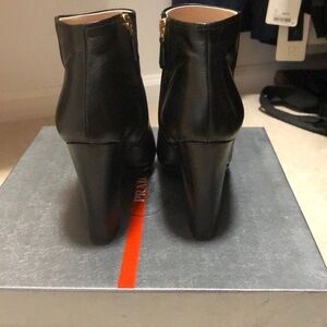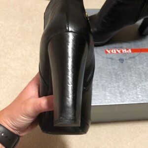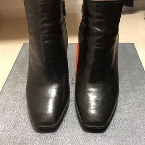 RARE!! hard to find Prada black soft butter leather boots. Worn a few times Prada black booties with side zip. PRADA gold lettering on each boot. Great condition only sign of wear is top of boot by ankle size 39.5. Black nappa leather 4” heel see picture