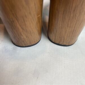 PRADA Brown Patent Leather Open Toe Wood Grain Block Heel Sandals