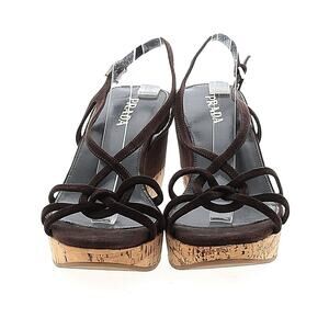 PRADA Brown Suede Cork Heel Platform Wedge Sandals Size EU 38