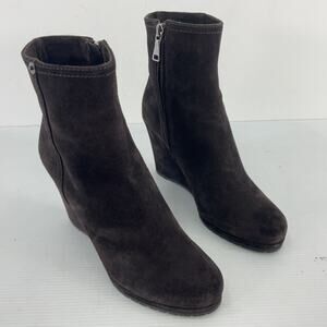 PRADA Brown Suede Leather Ankle Wedge Boots Women’s Size 8.5 Preowned