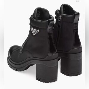 PRADA Brushed Leather and Re-Nylon Laced Booties