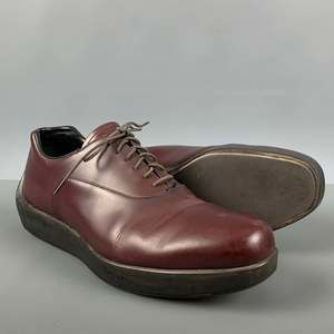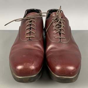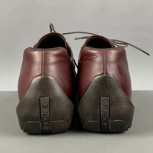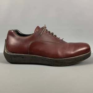 PRADA shoes comes in a burgundy leather featuring a platform sole, round toe, and a lace up closure. Made in Italy. Very Good Pre-Owned Condition. As Is. Marked: 2 EG026 8 1/2Outsole: 12.5 inches x 4 in Sui Generis Reference: 124845 Category: Lace Up Shoes More Details Brand: PRADA Size: 9.5 Gender: Male Color: Burgundy Fabric: Leather Style: Platform Made in: Italy Age Group: Adult Sui Generis Designer Consignment is an award winning fashion resale store for Women & Men. Located in San Francisco. The New York Times, GQ, Refinery29, GOOP, Forbes and more have recognized Sui Generis as one of the best consignment stores in US and San Francisco readers vote us their favorites. SGDC23A