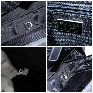 PRADA Business Bag Nylon Black Silver Auth bs30135