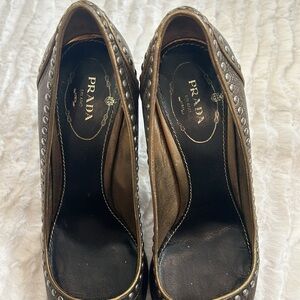 PRADA CALZATURE DONNA FUME STUD CAMMELLO SIZE 36.5 US 6.5 medieval stiletto heel