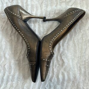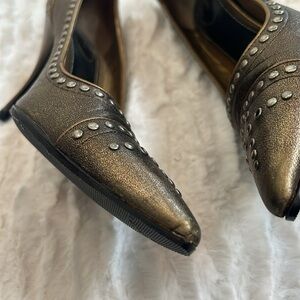 Style : CALZATURE DONNA FUME STUDDED Leather PUMP / medieval stiletto CAMMELLO / heels / slip on / shimmer metallic