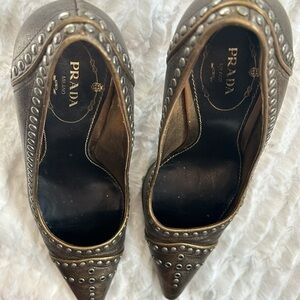 PRADA CALZATURE DONNA FUME STUD CAMMELLO SIZE 36.5 US 6.5 medieval stiletto heel
