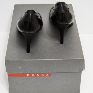 PRADA CALZATURE DONNA NAPPA SPORT BLACK LEATHER PUMPS * 38 * NEW IN BOX *