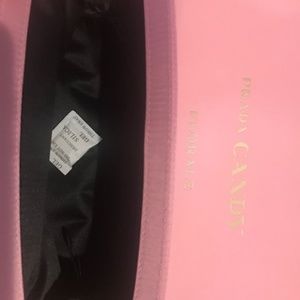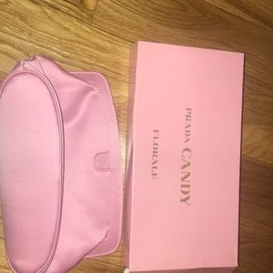 Brand new PRADA Candy Makeup/Cosmetic/Travel Bag. Bright hot pink satin type fabric. Measures approx. 8" x 5" x 2 1/4". Comes with box. Box has a few dents in it from storage. Will ship promptly from a smoke-free/pet-free home.