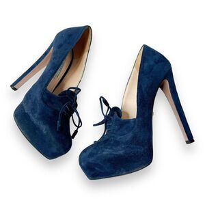 PRADA Calzature Donna Blue Suede Lace Up Suede Platform Heels Pumps Women’s 38