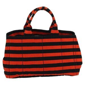 PRADA Canapa GM Hand Bag Canvas Black Orange gold Auth 98112V