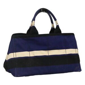 PRADA Canapa GM Hand Bag Canvas Blue Gold