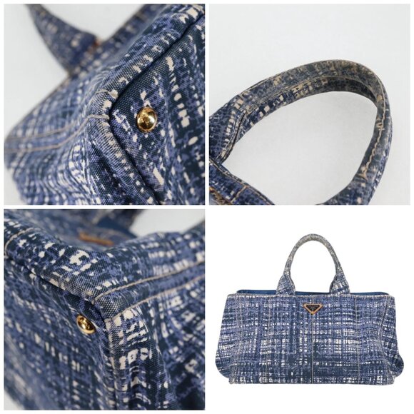 PRADA Canapa GM Hand Bag Canvas Blue Gold