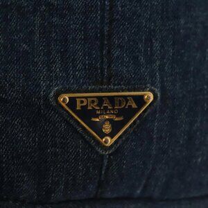 PRADA Canapa GM Hand Bag Denim Blue Gold Auth 139546
