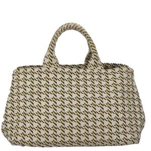 PRADA Canapa MM Hand Bag Canvas 2way White Yellow gold Auth 105426