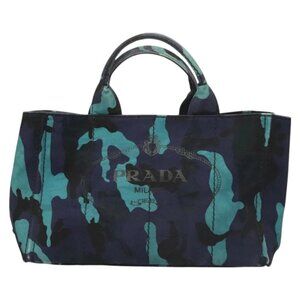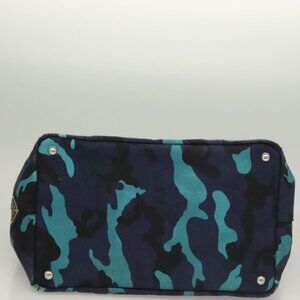 PRADA Canapa MM Hand Bag Canvas Blue Silver Camouflage Auth