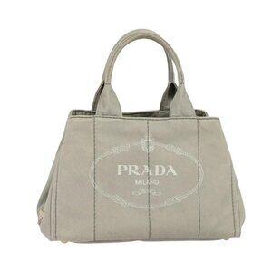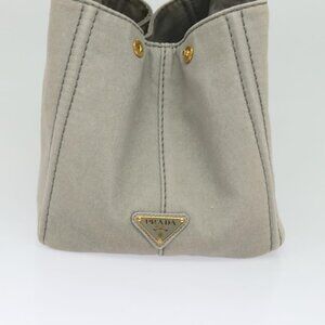 PRADA Canapa MM Hand Bag Canvas Gray Gold Auth