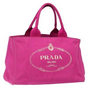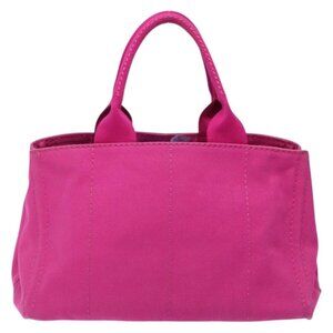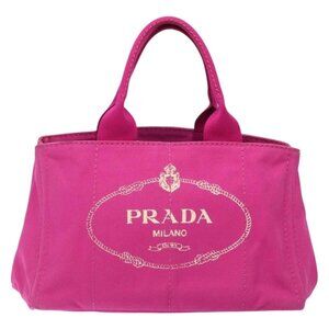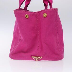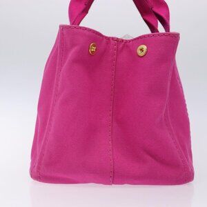 PRADA Canapa MM Hand Bag Canvas Pink Gold Auth gh293