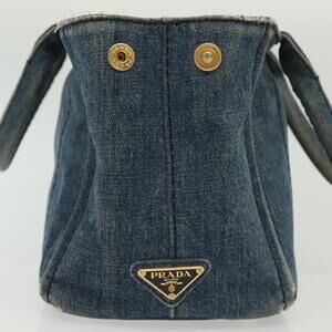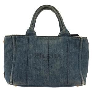 PRADA Canapa PM Hand Bag Denim Blue Gold