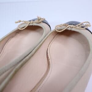 PRADA Colorblock Bow Ballet Flats Beige Black Canvas Patent Leather Women's 35.5/US 5.5