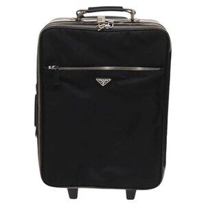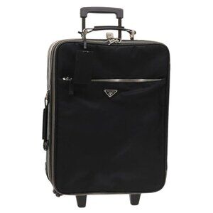 PRADA Carry Case Suitcase Nylon Leather Black Silver Auth